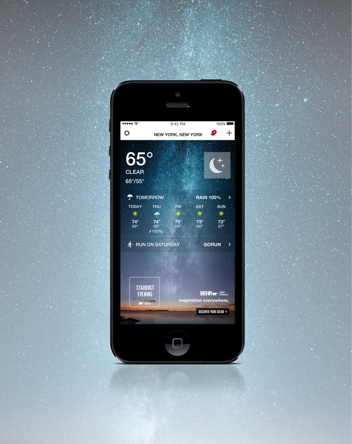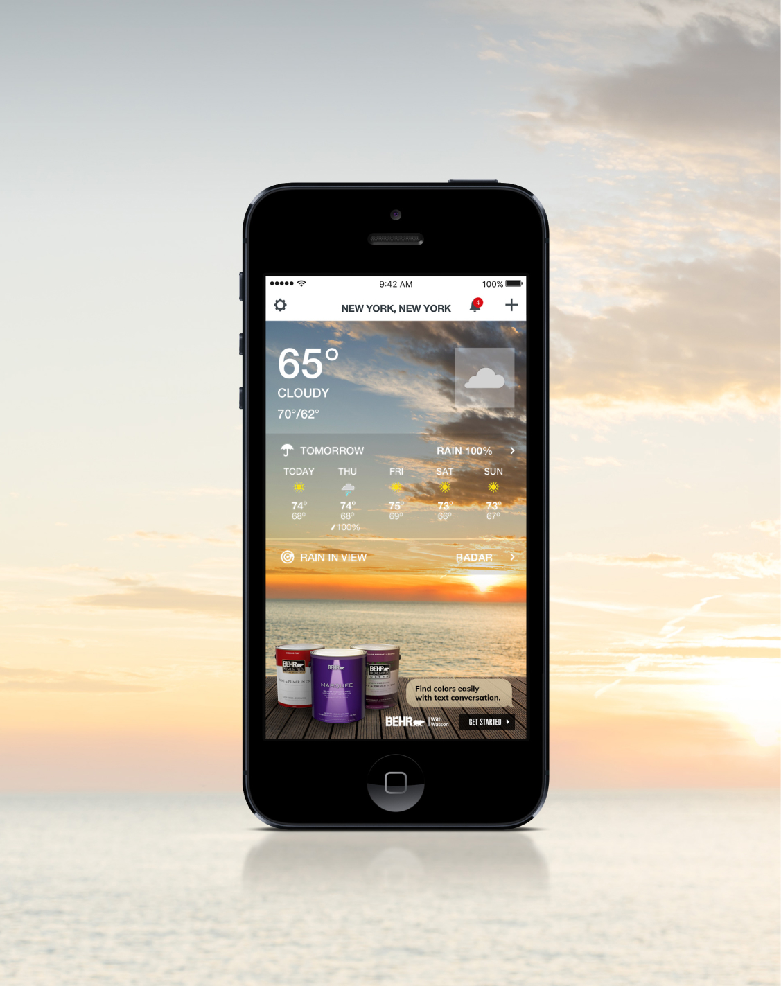 This initiative represents one of BEHR’s earliest explorations into AI‑driven customer engagement. What began as an idea to surface localized weather insights through THD/BEHR kiosks evolved into a deeper collaboration with Weather.com and IBM Watson Ads. Through that partnership, we saw an opportunity to merge Watson’s conversational AI with our newly launched Color Discovery survey, a mood and style‑based color finder with a curated palette.