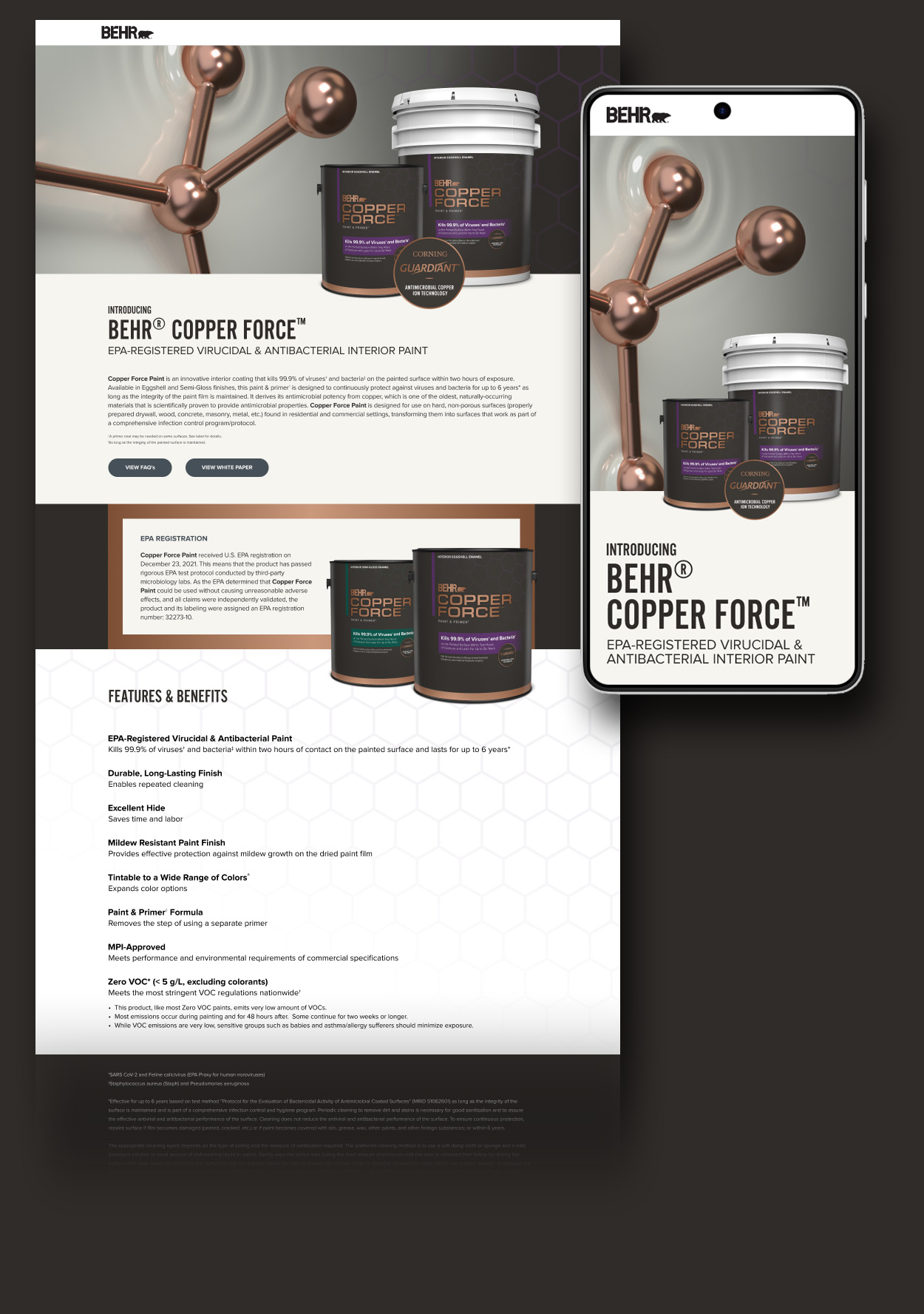The Copper Force project called for a series of educational, visually striking 3D illustrations—scientific enough to feel credible, but still accessible to everyday consumers. I partnered closely with the paint lab, product team, and brand marketing to translate complex antimicrobial technology into visuals that were both accurate and compelling.