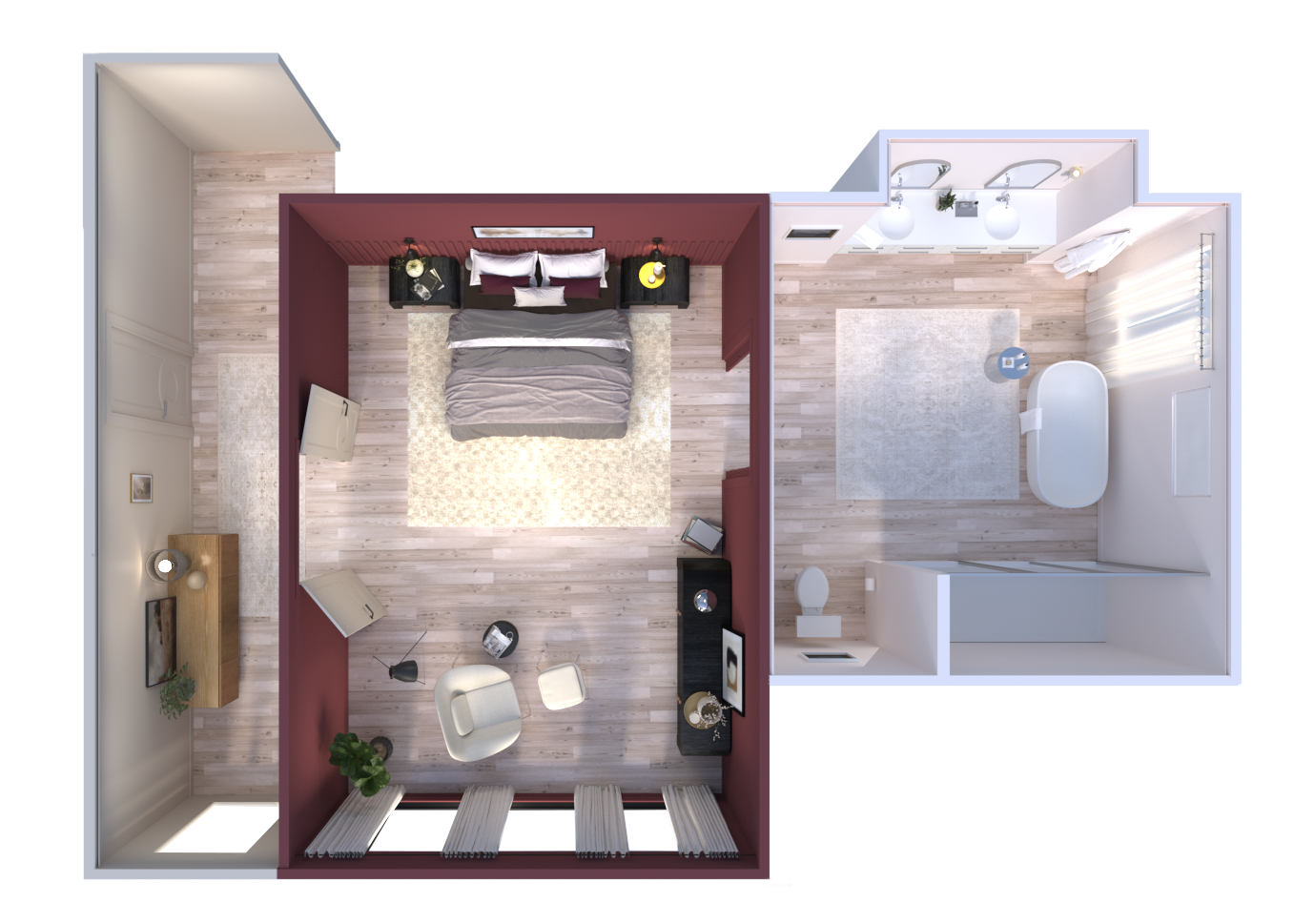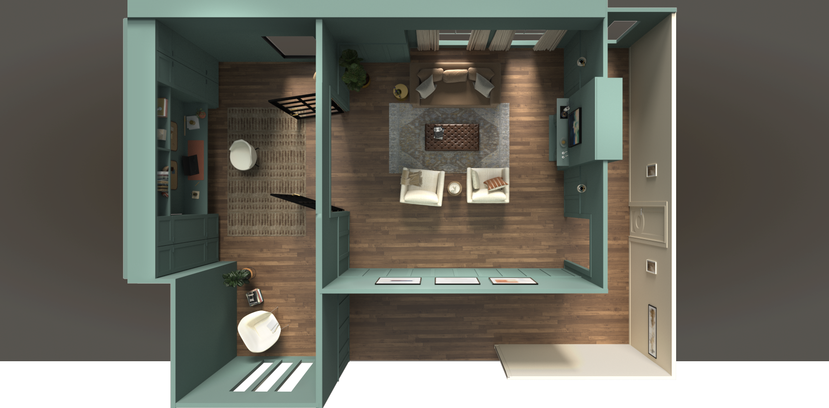 These environments have become more than static imagery — they’ve sparked new approaches to color storytelling, including day‑and‑night room variations and richer contextual visualization across BEHR’s digital ecosystem. While I build all architectural elements from scratch, I license plant assets to balance production time and cost. The result is a flexible, cinematic interior library that elevates brand storytelling and supports immersive, multi‑channel experiences.