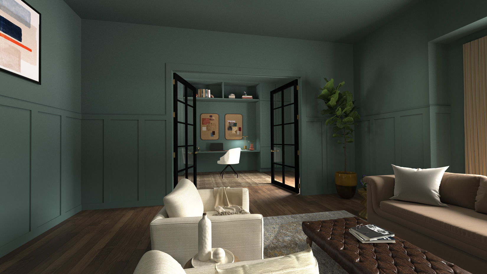 These environments have become more than static imagery — they’ve sparked new approaches to color storytelling, including day‑and‑night room variations and richer contextual visualization across BEHR’s digital ecosystem. While I build all architectural elements from scratch, I license plant assets to balance production time and cost. The result is a flexible, cinematic interior library that elevates brand storytelling and supports immersive, multi‑channel experiences.