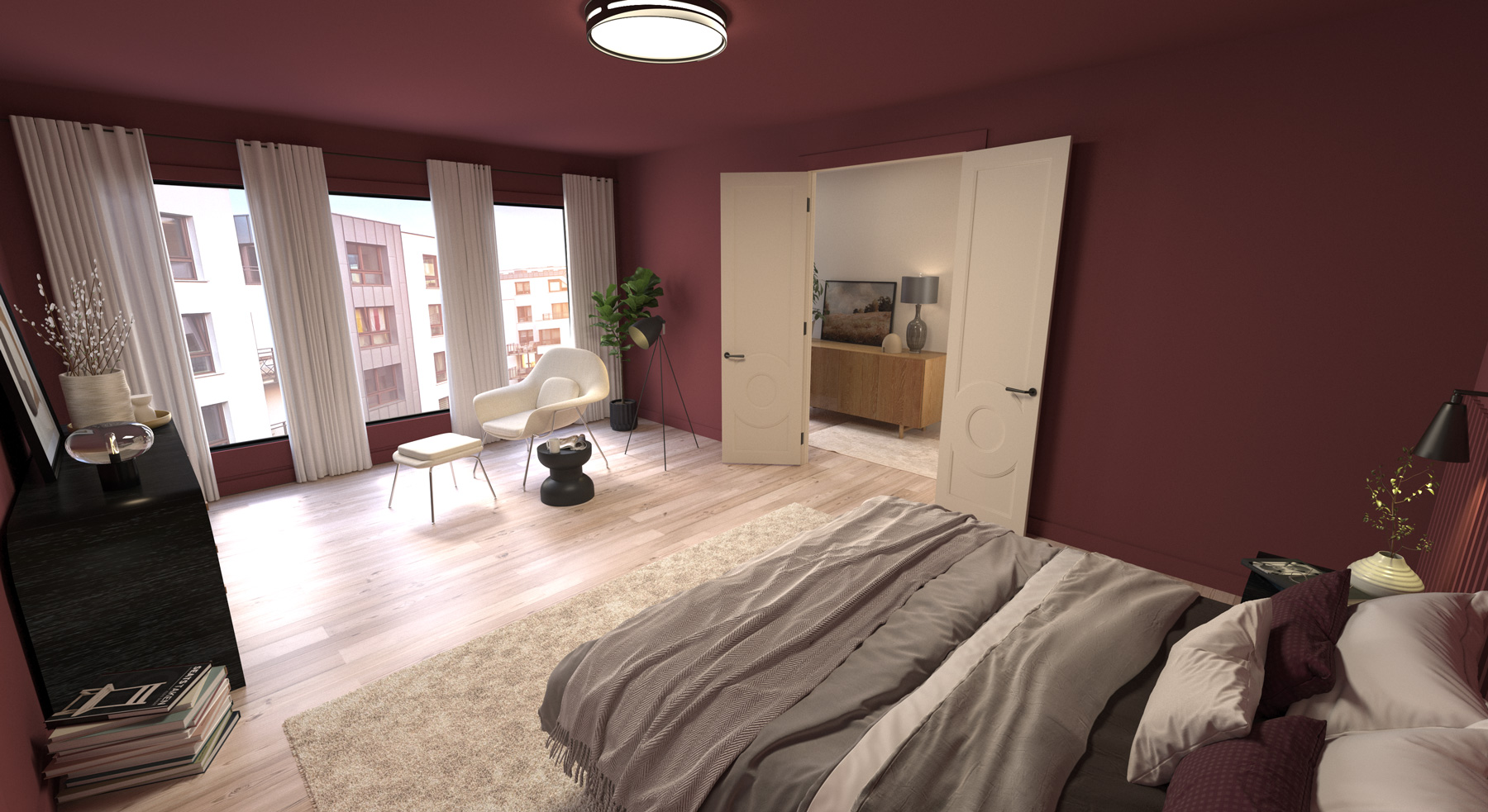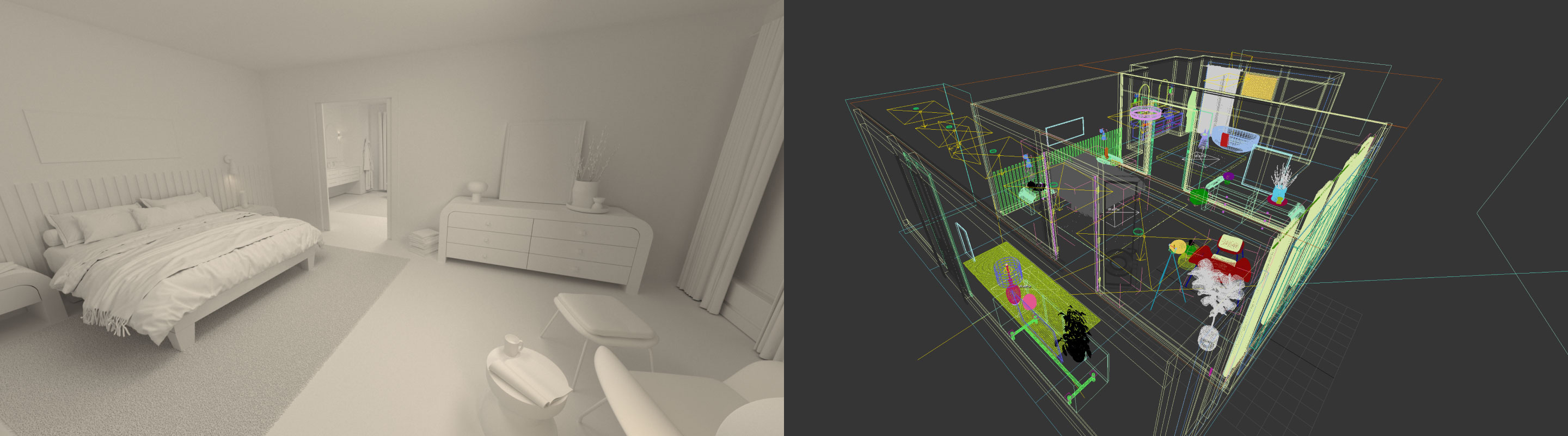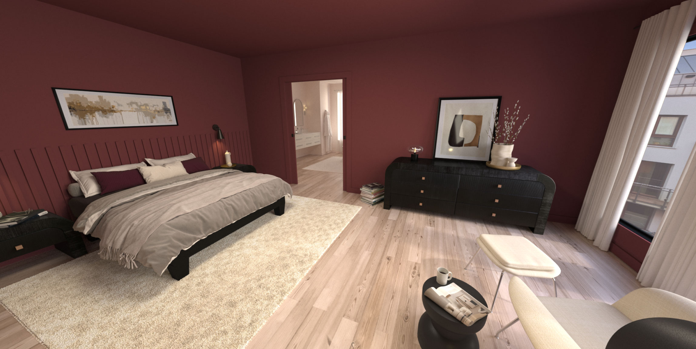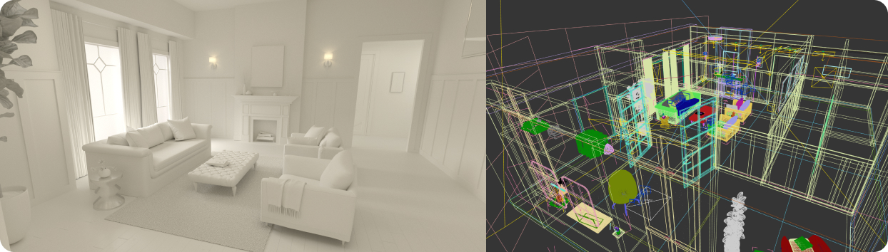I model and render architectural interior environments that support a wide range of BEHR initiatives, including the annual Color of the Year campaigns. These spaces serve as photorealistic canvases for exploring color at different times of day, powering VR walkthroughs, driving Three.js motion experiences, and expanding BEHR’s library of premium visualization assets. Every scene begins with foundational modeling in 3ds Max and is brought to life through V‑Ray lighting, materiality, and composition.